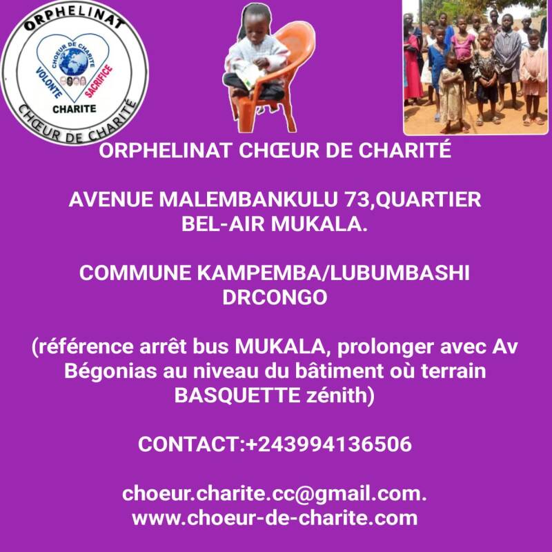 La lutte pour les droits des orphelins en République Démocratique du Congo est un combat indispensable, et il existe un besoin urgent de solidarité de personnes des bonnes foi, de n'importe quel nationalité, quelle classe sociale et Quelle croyance . Les enfants sont l’avenir de cette nation et de l'humanité. Garantir leur protection et leur bien-être est un impératif moral, et chacun peut apporter sa pierre à l'édifice en soutenant des initiatives comme celle de l'orphelinat "Chœur de Charité", véritable phare d'espoir au milieu de l'obscurité.